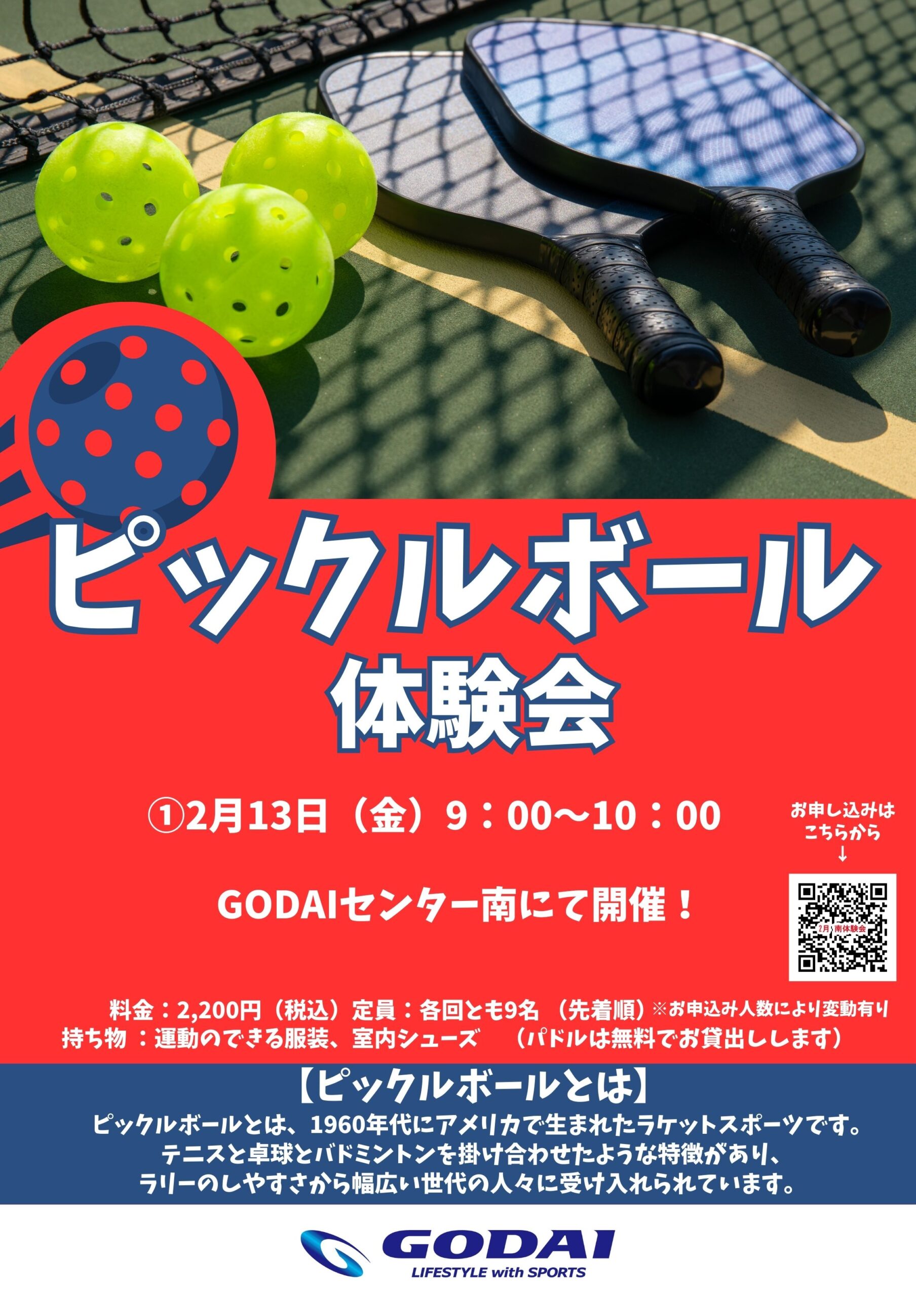 • ピックルボール体験会 in GODAIセンター南 参加者募集中!