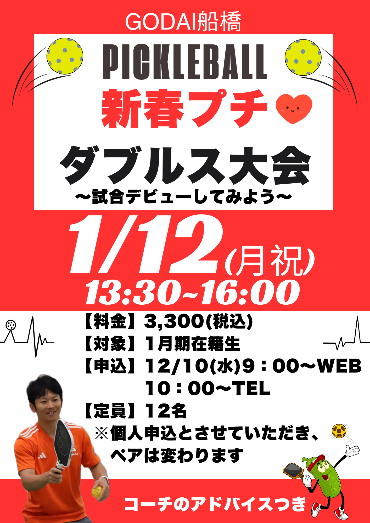• 【ピックルボール】新春プチダブルス大会のご案内