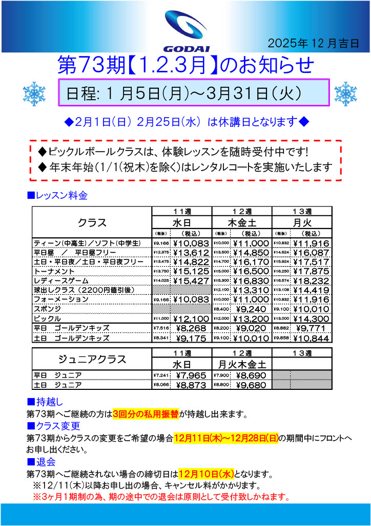 • 【第73(1・2・3月)期】来期のお知らせが公開されました