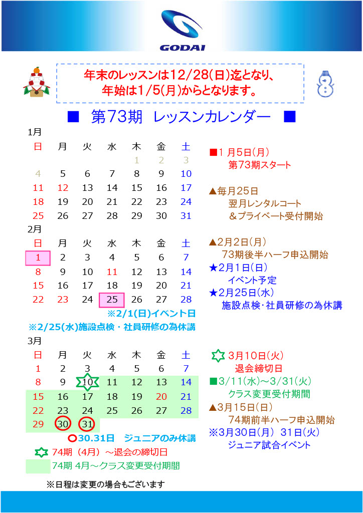 【第73(1・2・3月)期】来期のお知らせが公開されました