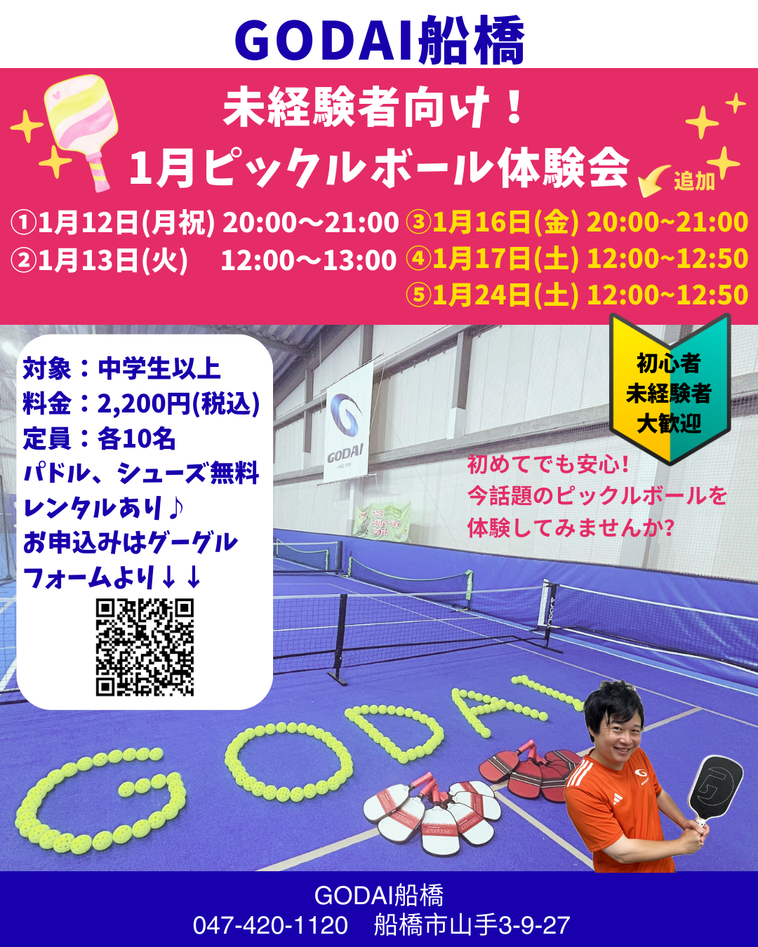 『GODAI船橋』2026年1月ピックルボール体験会のご案内