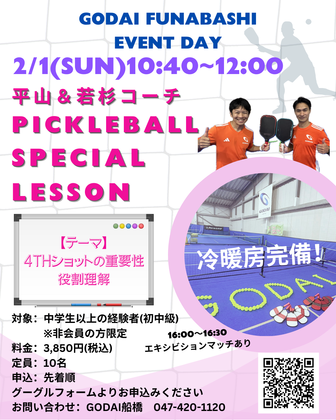 2/1(日)にGODAI船橋にてスペシャルレッスンを実施いたします!
