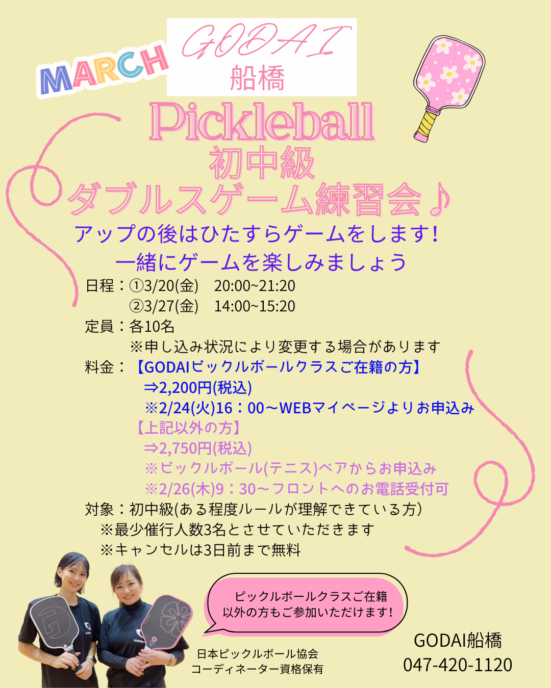 3月からはピックルボールクラスご在籍の方以外の方も