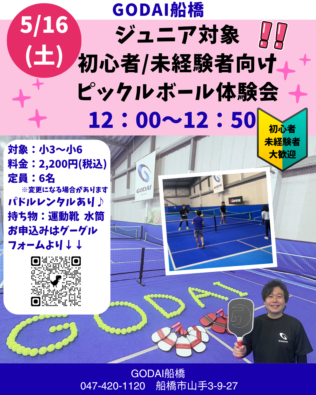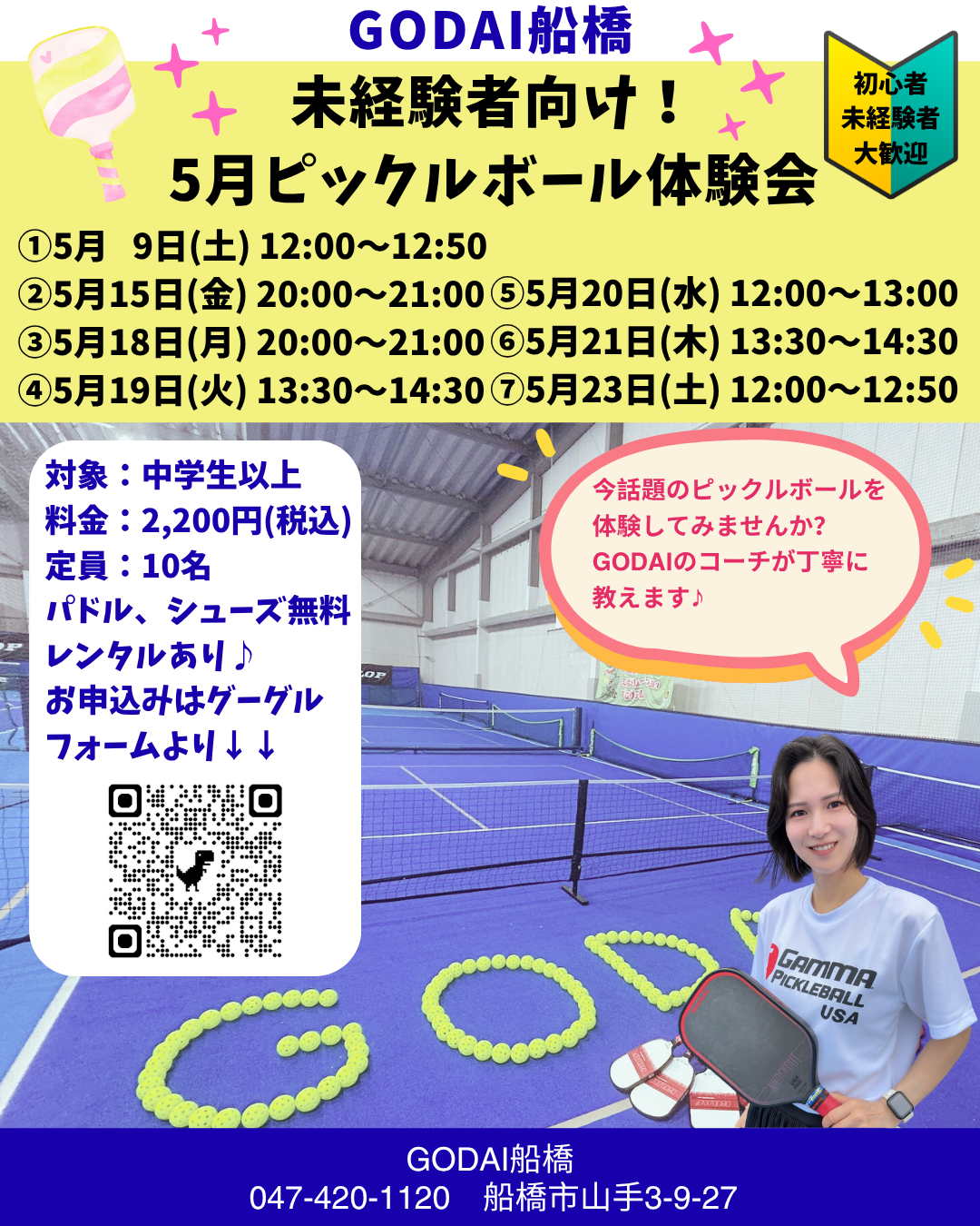 5月のピックルボール体験会のお申込みは