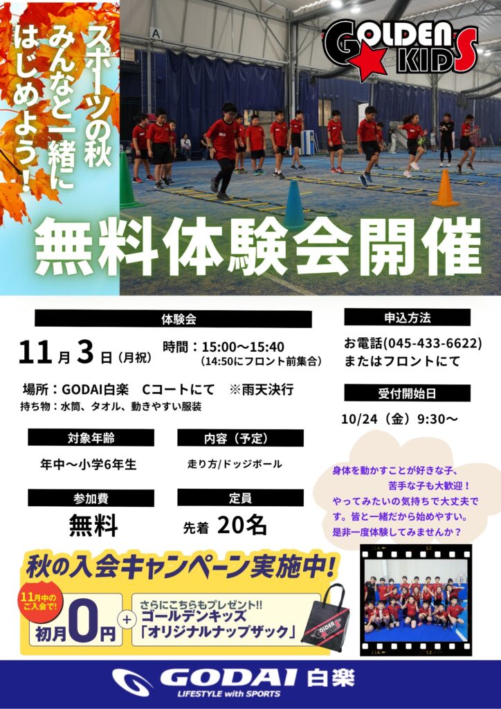 2025.10.28 11/3(月・祝) 無料体験会開催!!