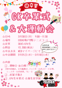 3月30日(月)に卒業式と運動会を開催します!こちら定員は30名となります。