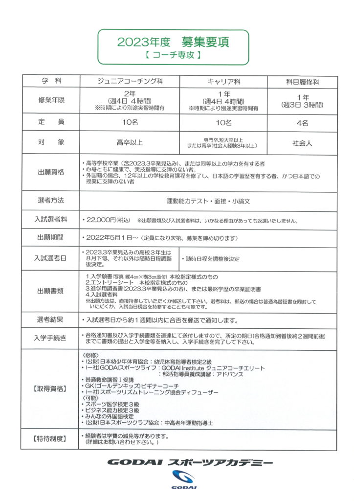 2022年5月1日から2023年度GSA入学募集が始まりました。