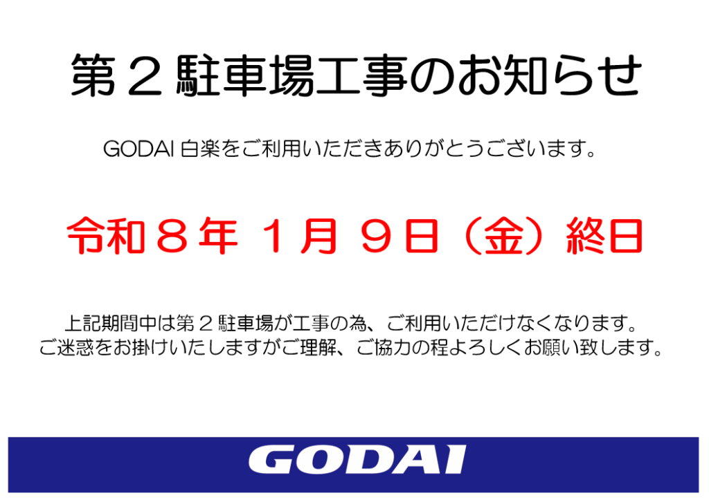 1/9(金)第2駐車場工事のご案内