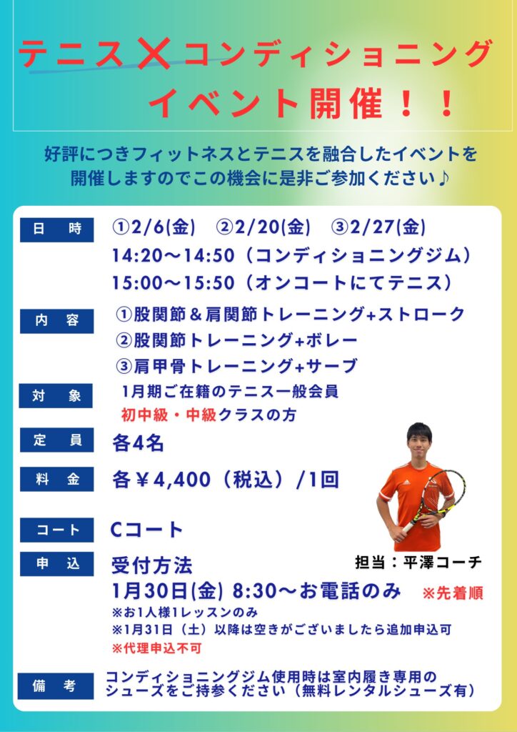 • 2月テニス×コンディショニングイベント