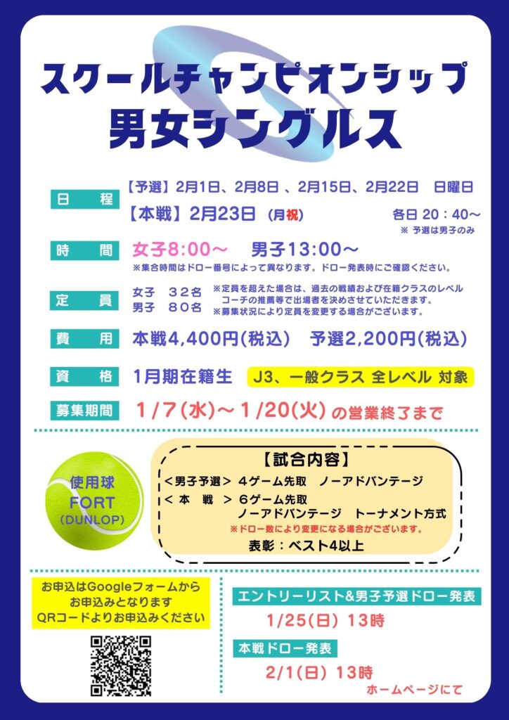 2/23(月)SCシングルスのご案内 男子本戦ドロー公開
