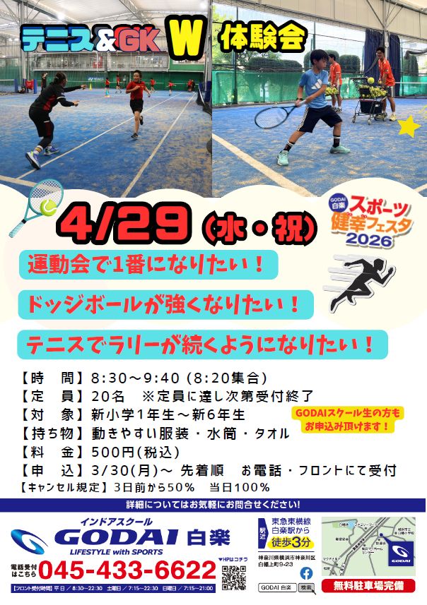 4/29(水)テニス&GKW体験会
