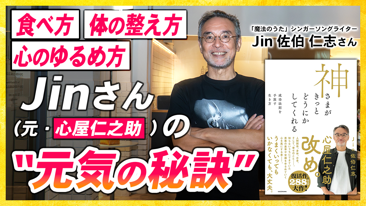元・心屋仁之助として多くの人を支え、現在はシンガーソングライターとして活動するJin 佐伯仁志さんが語る“元気の秘訣”。腹七分目の食習慣や心と体の整え方、そして“無理をしない生き方”について語ってくださいました。今を健やかに、楽しく過ごすためのヒントが詰まった最終回です。(全4回の第4回)