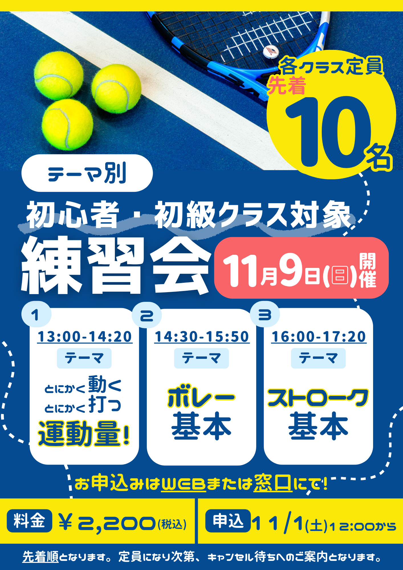 • 🎾初心者初級クラス練習会のお知らせ🎾