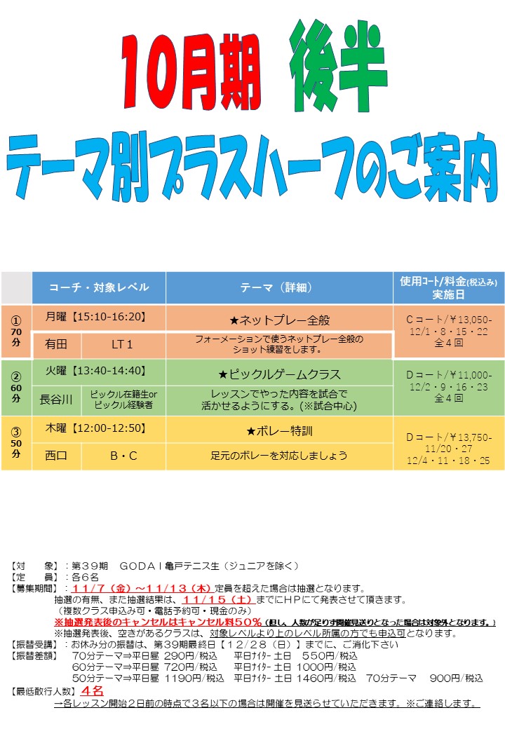 • 【10月期 テーマ別 ハーフクラス】のご案内