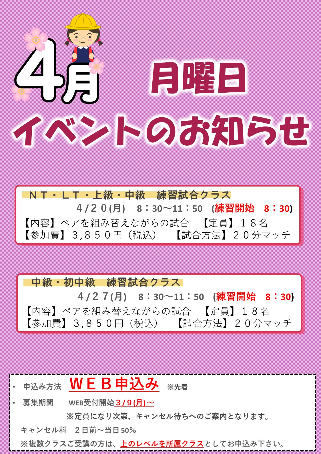 【4月】月曜日イベントのお知らせ