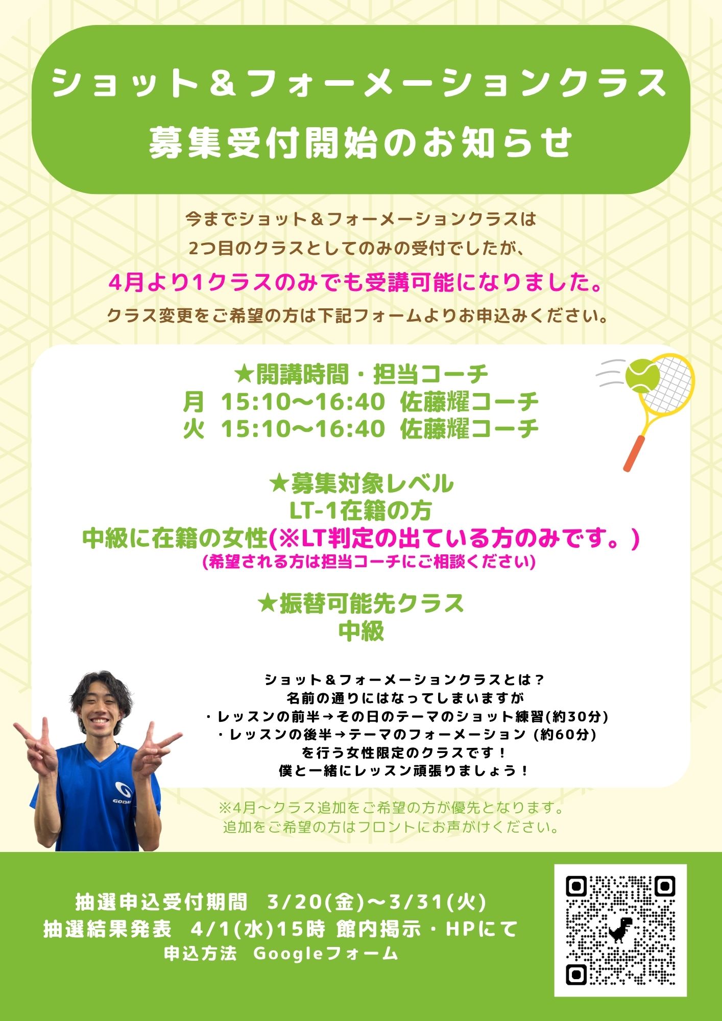 【ショット&フォーメーションクラス】単独受講申込開始のお知らせ