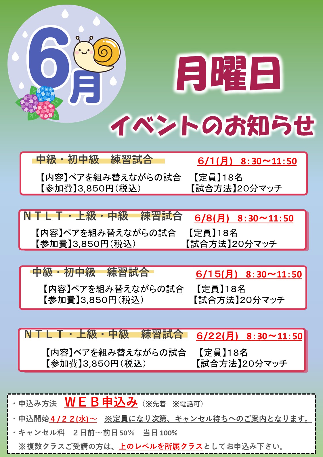 【6月】月曜日イベントのお知らせ