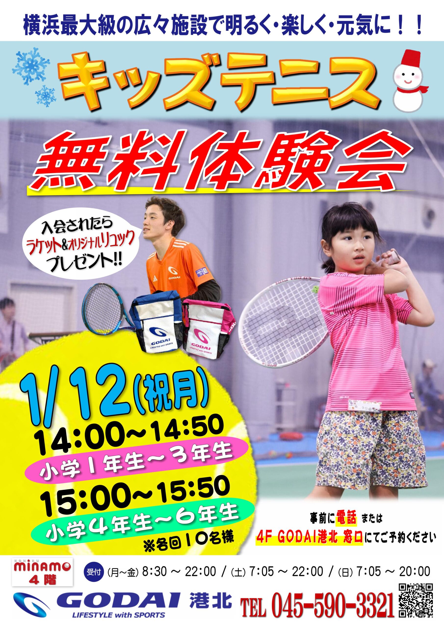 2026年1月12日(祝月)キッズテニス無料体験会開催!!!