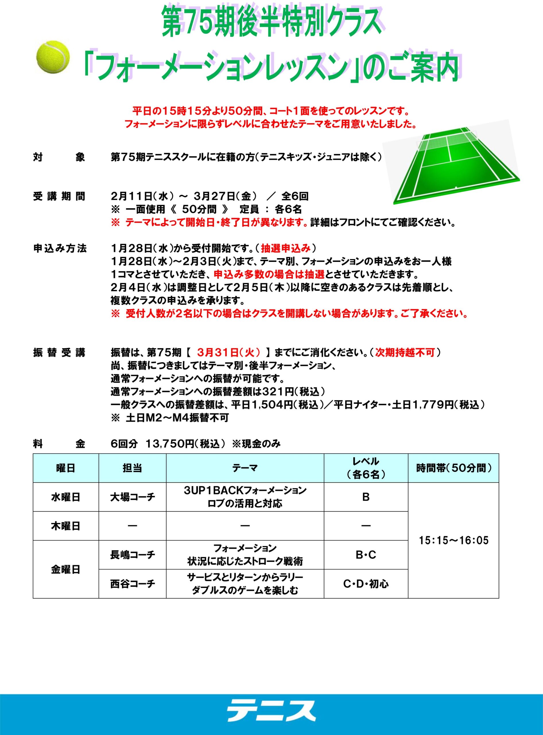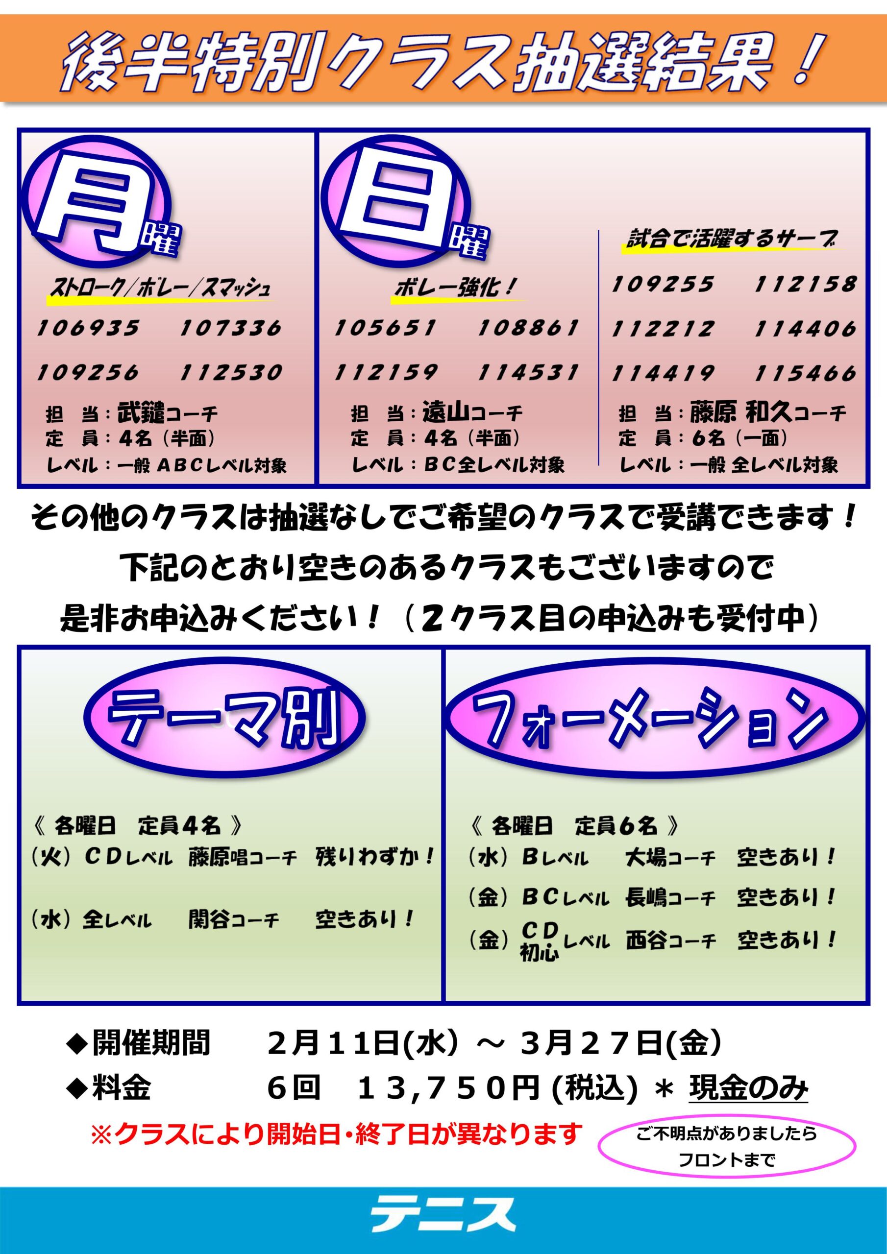 第75期 後半特別クラスのお知らせ *抽選結果発表